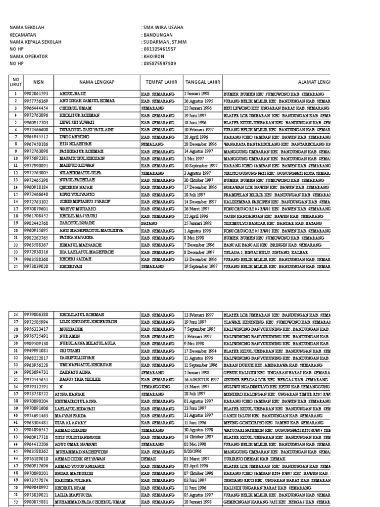 Format Data Cetak Kartu Nisn Siswa Sma Wira Usaha 2 via id.scribd.com